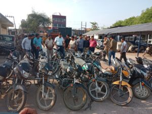 थाना सिविल लाइन पुलिस एवं सायबर सेल की संयुक्त टीम द्वारा 35,000 हजार रूपये के ईनामी बदमाश व उसके साथी आरोपी को गिरफ्तार कर आरोपियों के कब्जे से 16 मोटर साइकिलें एवं 01 अवैध हथियार जब्त कर आरोपियों को किया गिरफ्तार।